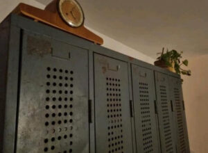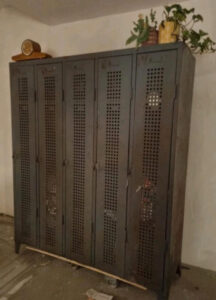 oude lockerkast. metaal met gaten zodat je kunt zien wat er in zit.